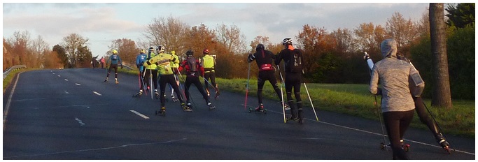 l'une de 14 km, l'autre de 8 km avec Laurent, guidée respectivement par François et Laurent, membres et moniteurs de l'ASPTT Nantes Rollerski.