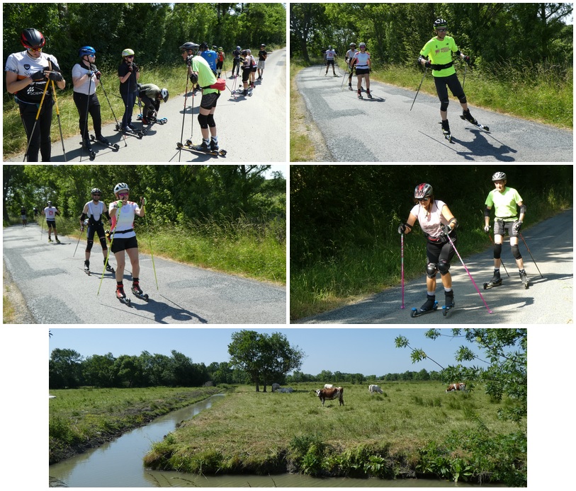 Le samedi après-midi, 15 skieurs et skieuses à roulettes, dont 9 membres du Biathlon Club de Montesson, se retrouvaient sur les petites routes des marais, à Couéron. Deux randonnées étaient proposées,